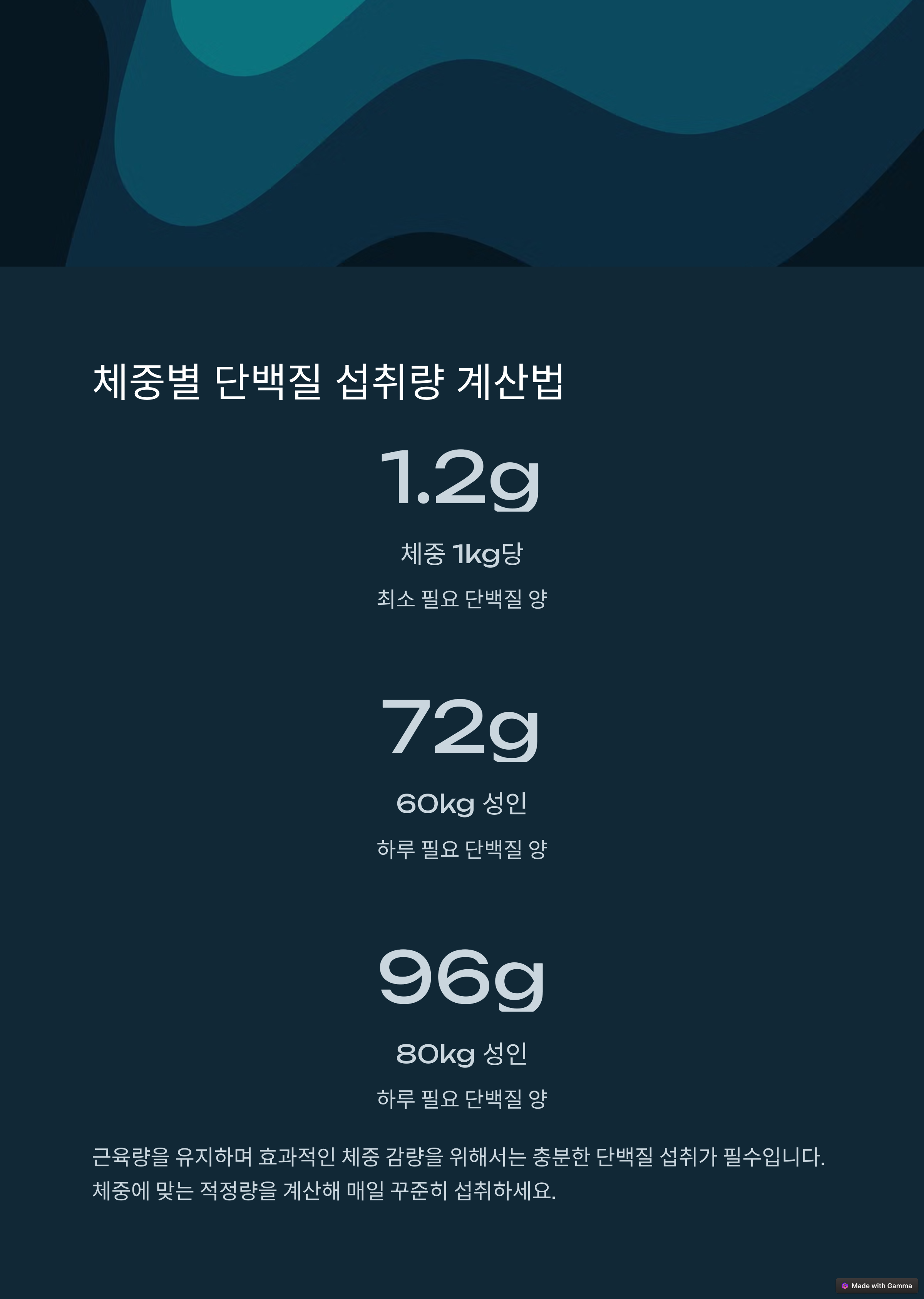 실제로 고단백 저탄수화물 식단을 실천하는 분들은 단백질 섭취량을 체중 1kg당 1.2g 이상으로 유지하고 있습니다. 예를 들어, 80kg 성인은 하루 96~100g의 단백질을 섭취해야 합니다. 이를 위해 동물성 단백질과 식물성 단백질을 1:2 비율로 균형 있게 구성하는 것이 좋습니다. 살코기, 생선, 달걀 등의 동물성 단백질과 두부, 콩, 견과류와 같은 식물성 단백질을 함께 섭취하면 체중 감량과 동시에 건강한 근육을 유지할 수 있습니다.